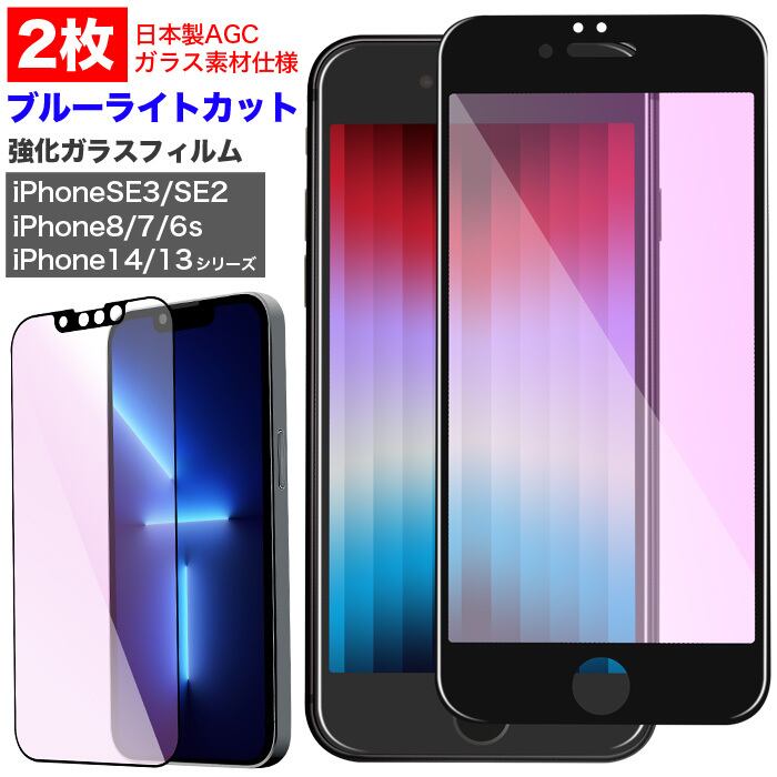 FLORA 2枚セット ブルーライトカット 強化ガラスフィルム iPhoneSE 第3世代 第2世代 全面保護 iPhone14 iPhone13 Pro mini iPhone8 iPhone7 アイフォン 保護フィルム SE3 SE2 保護フィルム